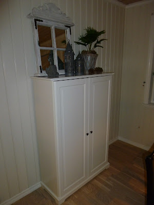 Er så fornøyd med mitt siste kjøp,benken i gangen.Endelig ble det litt orden i lue og votter.En kurv til hver av ungene ,så må jeg og mannen dele en.De rommer kjempemasse.